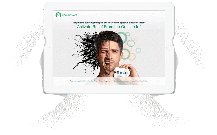 gammaCore™ (a non-invasive vagus nerve stimulator) is a small, portable, hand-held device used for the preventive treatment of headache and pain relief associated with migraine. The objective was to convert an existing print sales aid into an interactive visual aid that will serve as the primary tool to help a sales rep tailor the discussion to the needs and interests of the physician.
